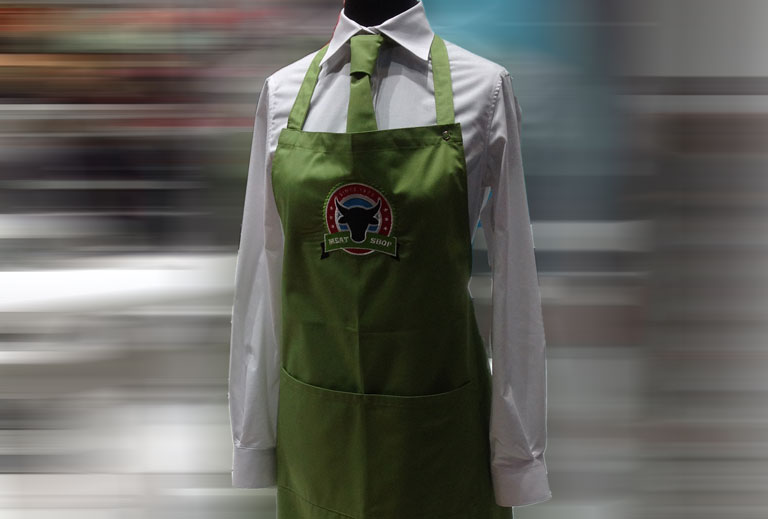 Schürzen und Jacken in der Gastronomie mit dem Firmenlogo bestickt repräsentieren sehr gut die Firma nach außen. Sie geben der Kleidung einen edlen Look. Eine passende dazu bestickte Krawatte runden das Bild ab.